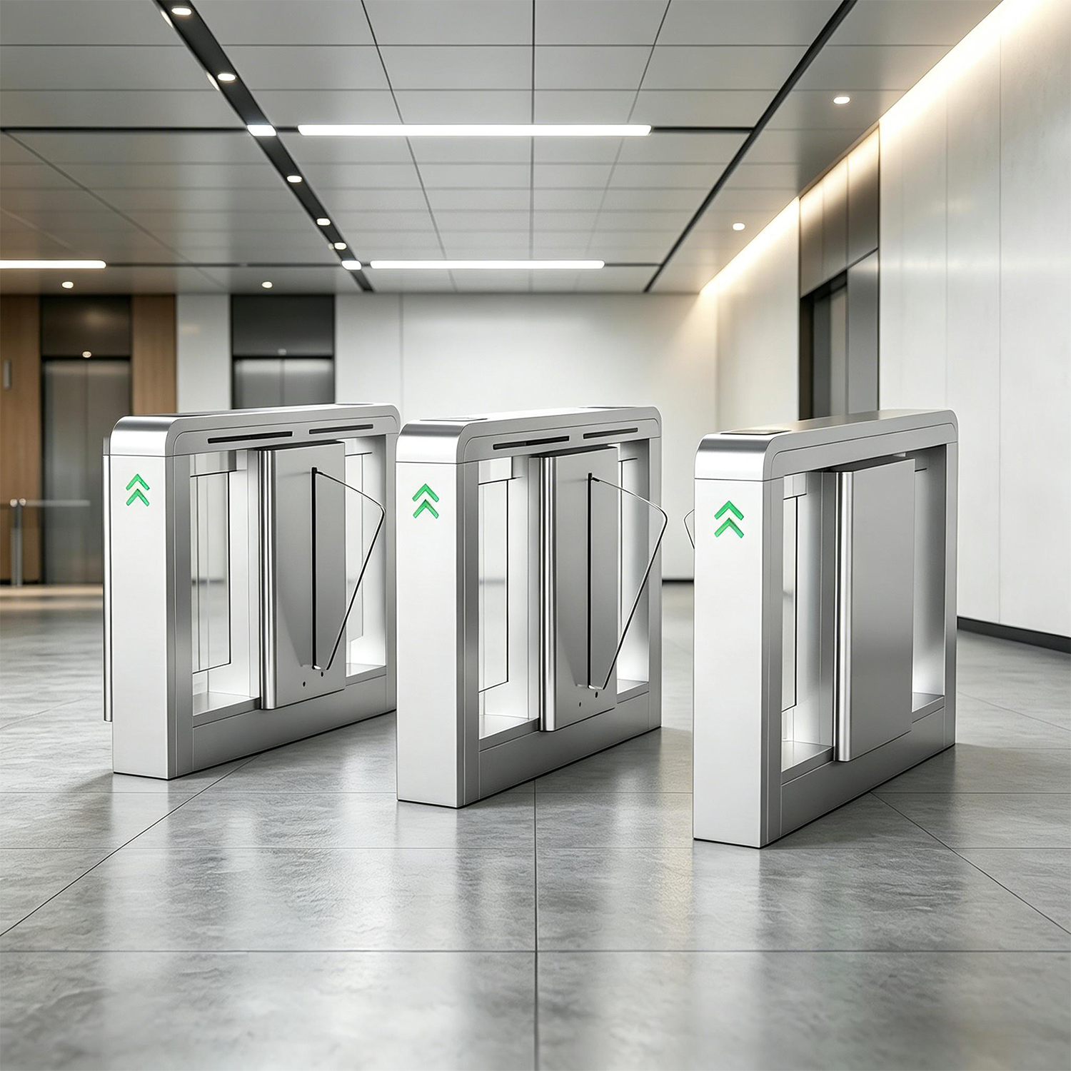 室内款采用光栅检测技术,配备40对光栅电眼;室外款使用光电开关检测技术,配备6对光电开关,检测严密,感应灵敏,通行安全。